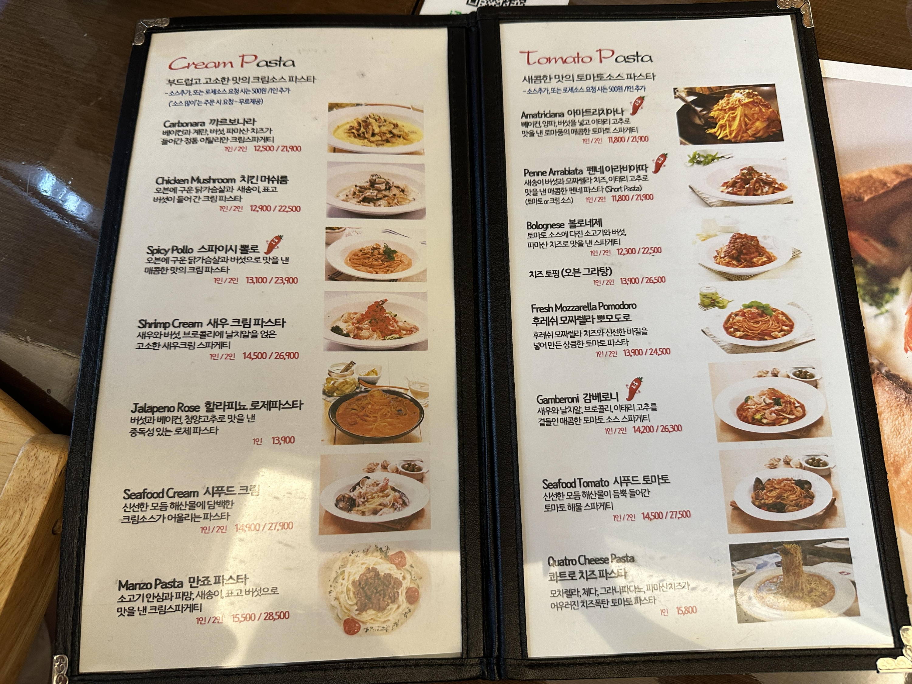 파스타 메뉴는 정말 다양해서 어떤 걸 먹어야 할지 고민될 정도였어요.