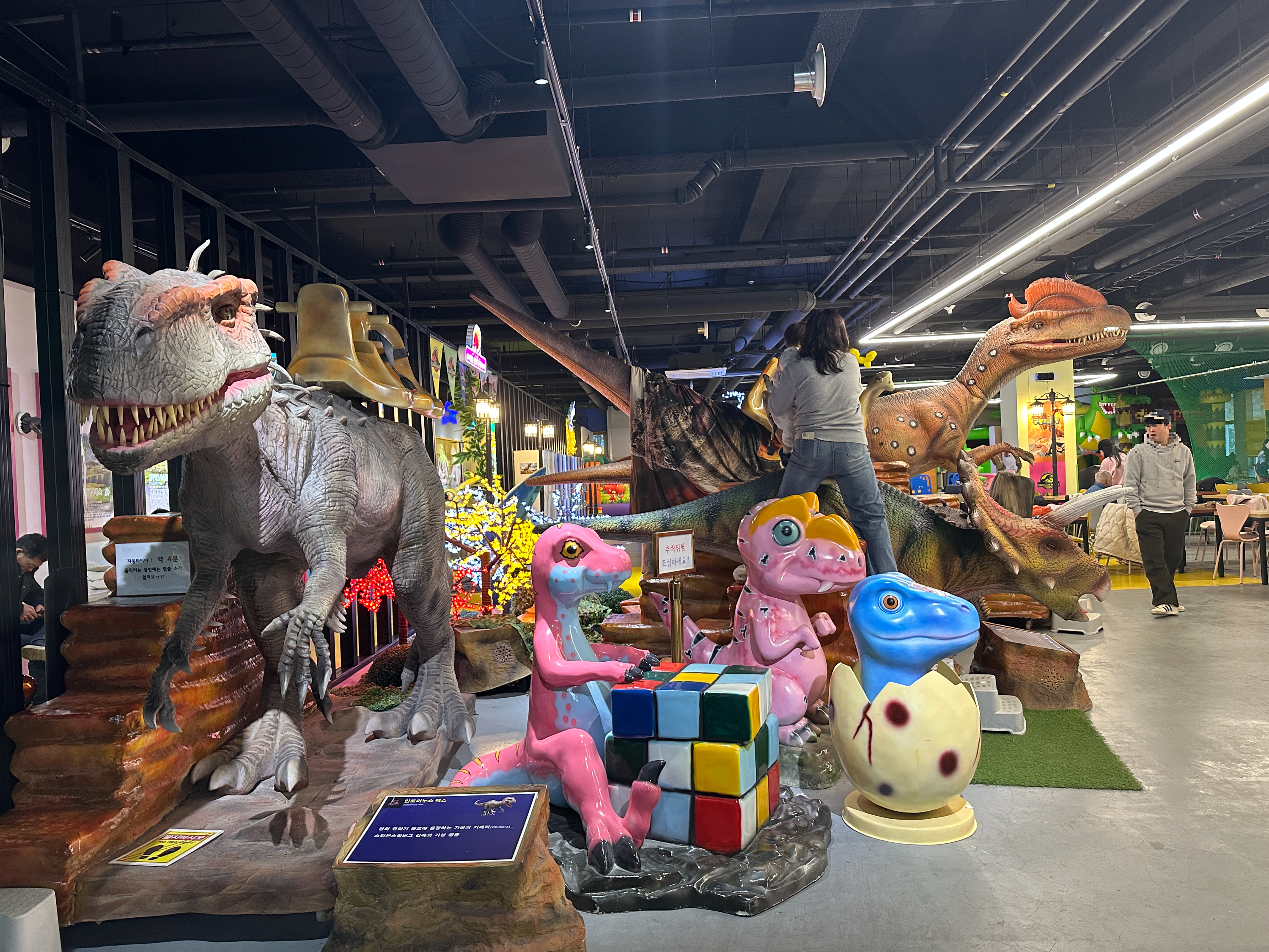 - 공룡 테마로 꾸며진 공간 인천공룡월드는 이름 그대로 '공룡'을 테마로 한 곳이라, 아이들이 정말 좋아해요. 실내는 공룡 모형들과 다양한 공룡 관련 장식들이 가득해서 아이들이 상상력을 발휘하며 놀 수 있는 환경이죠. 공룡의 세계로 떠나는 기분을 느낄 수 있어요!