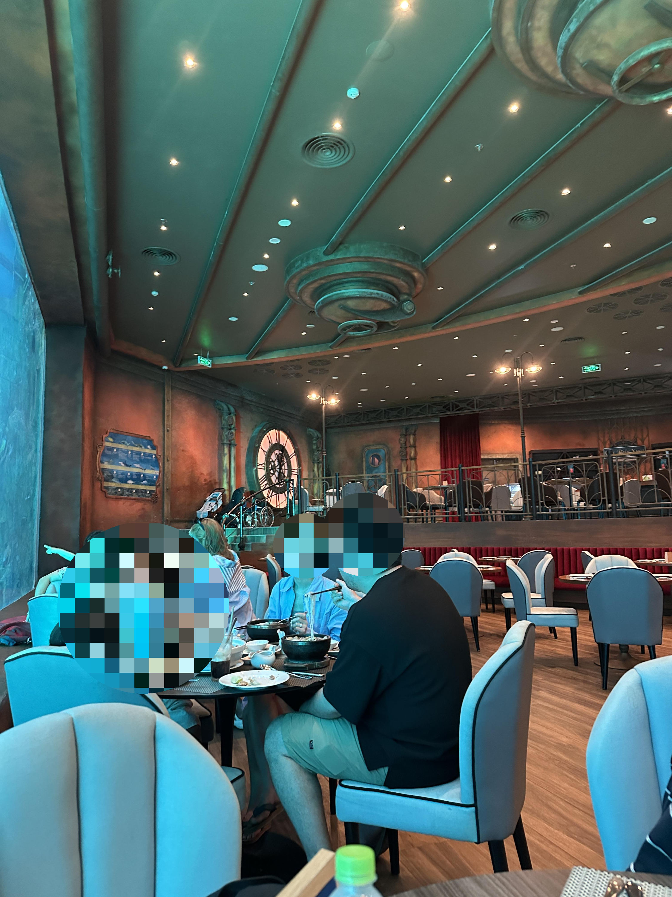 아이는 식사하는 내내 상어를 보면서 식사를 할 수 있어서 식사 내내 너무 신기해했어요.