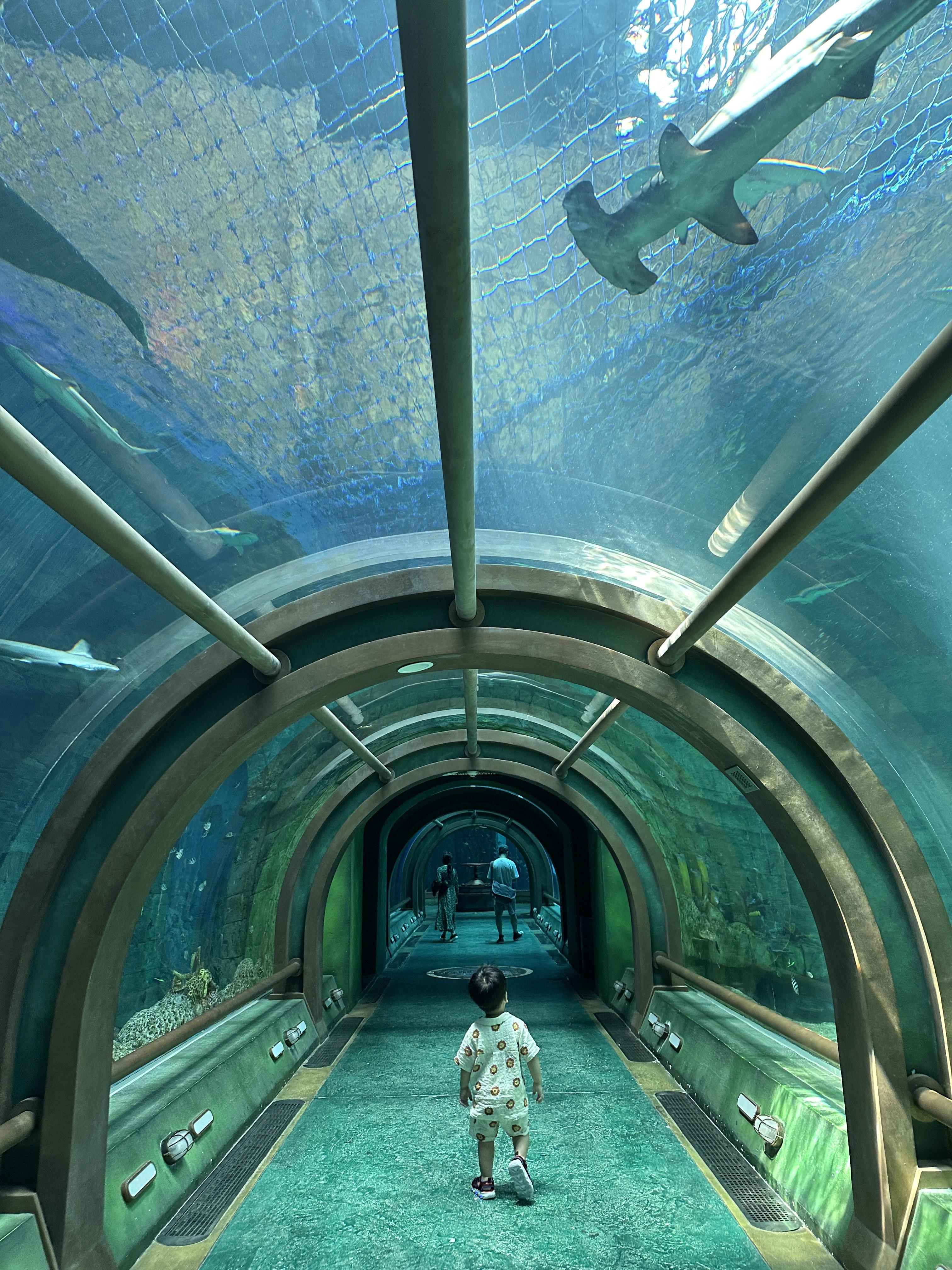 특히, 터널형 수족관에서는 물고기들이 머리 위로