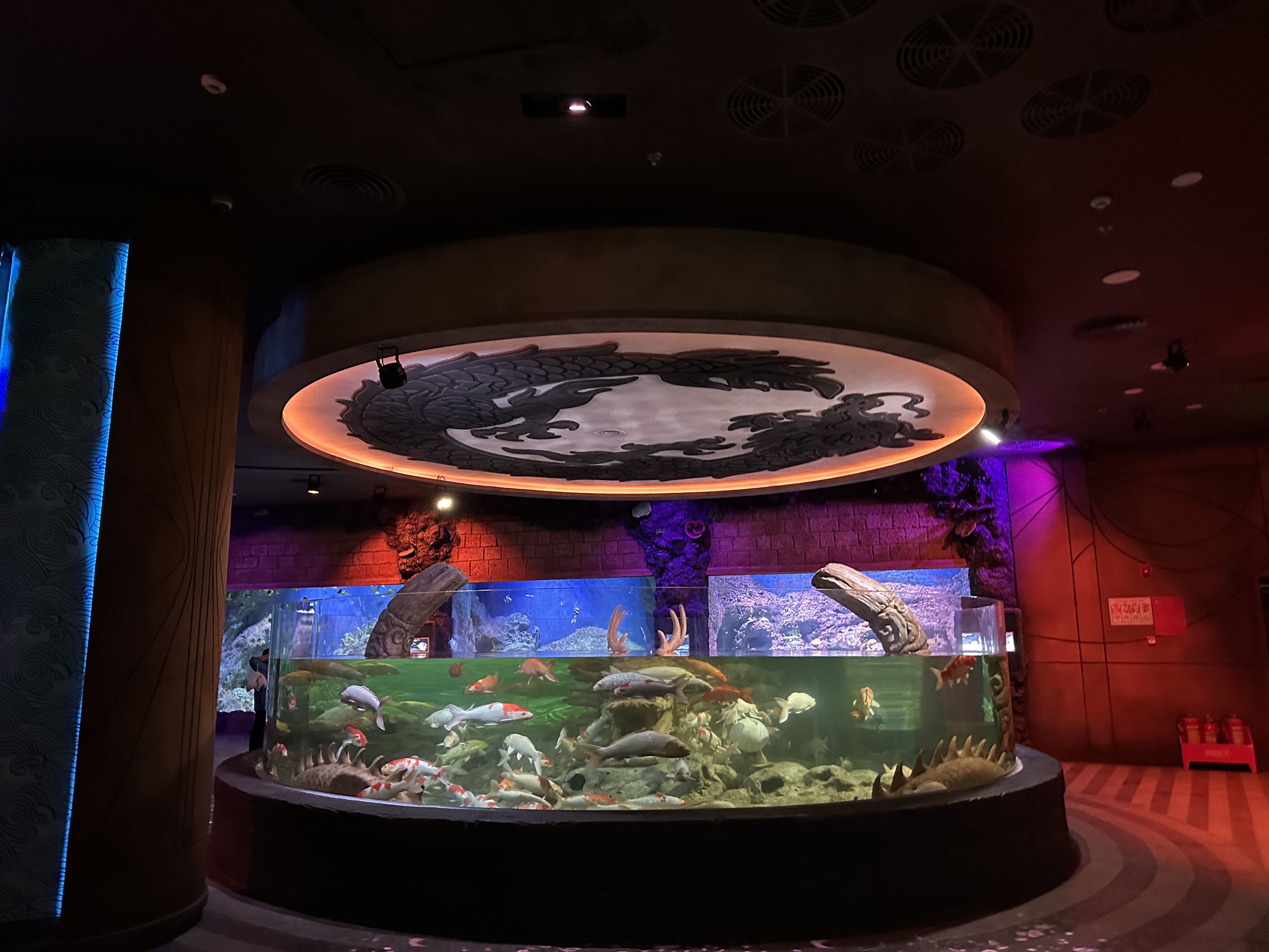 식사를 하면서 거대한 수족관을 감상할 수 있는 곳이에요.