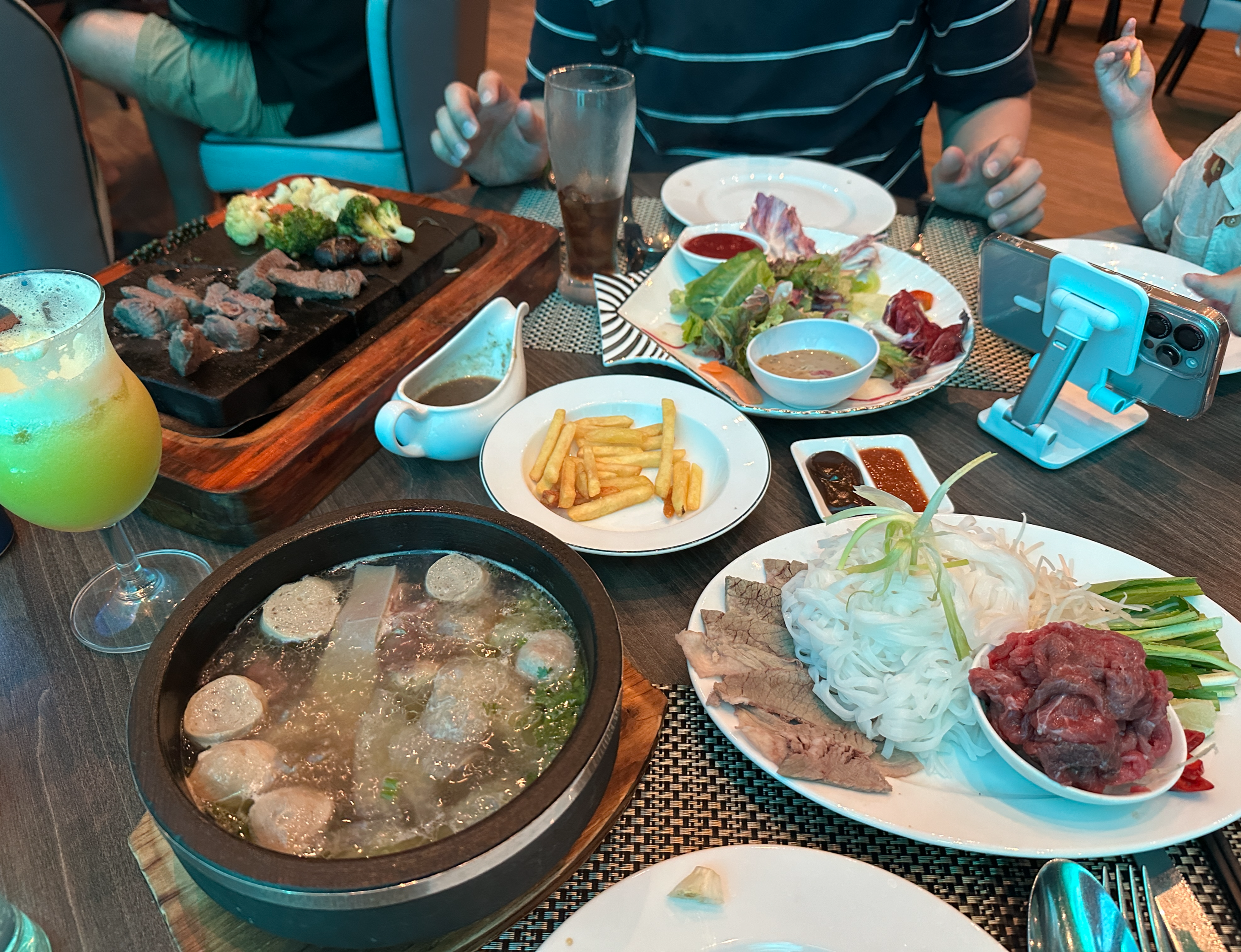 우리는 뜨거운 불판에 구워주는 스테이크와 베트남 전통 음식을 주문했는데,